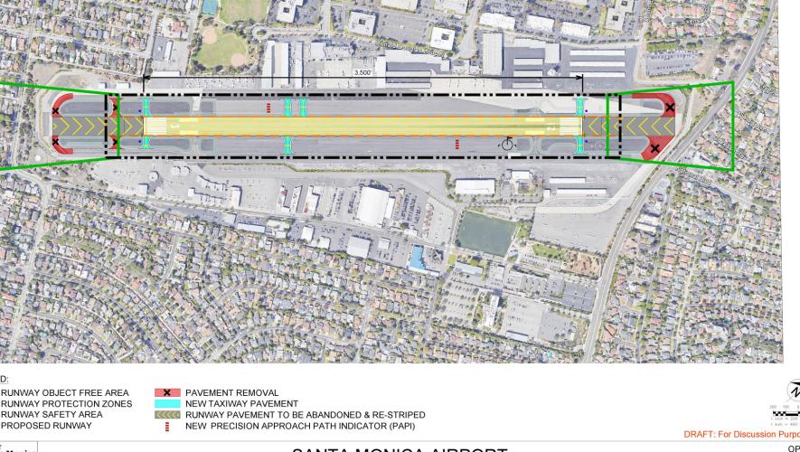 The option selected by the City of Santa Monica would see the remaining 3,500 feet of runway centered where the existing runway is located.