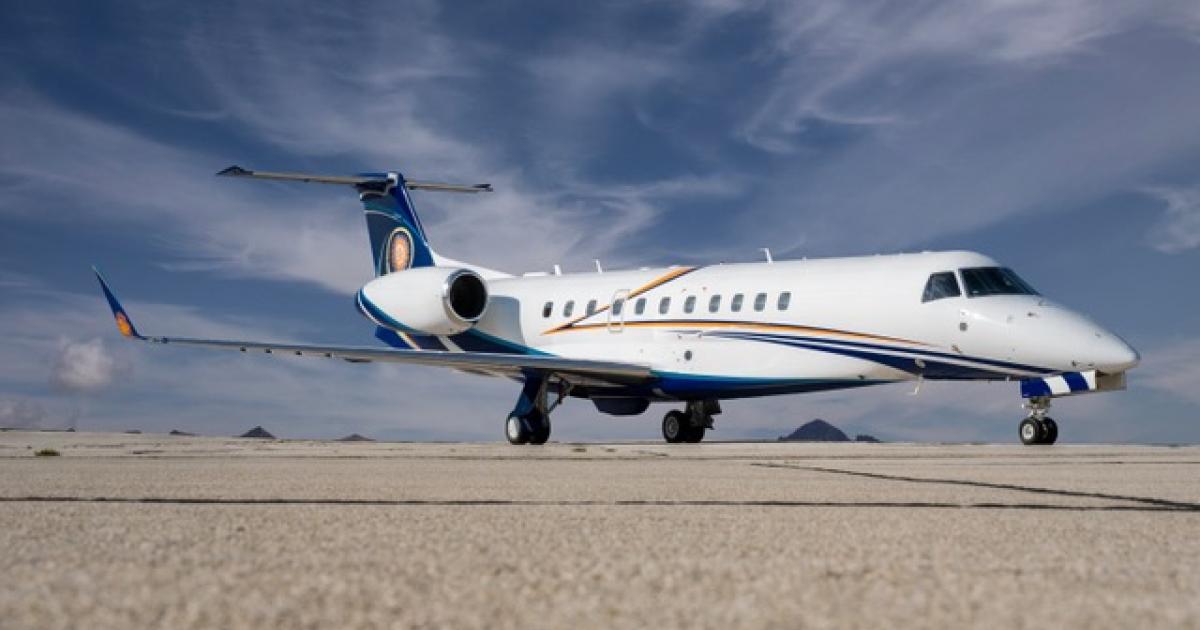This Embraer Legacy 650 underwent a complete exterior and interior refurbishment at General Atomics AeroTec Systems’ business jet unit in Oberpfaffenhofen, Germany. (Photo: General Atomics AeroTec Systems)