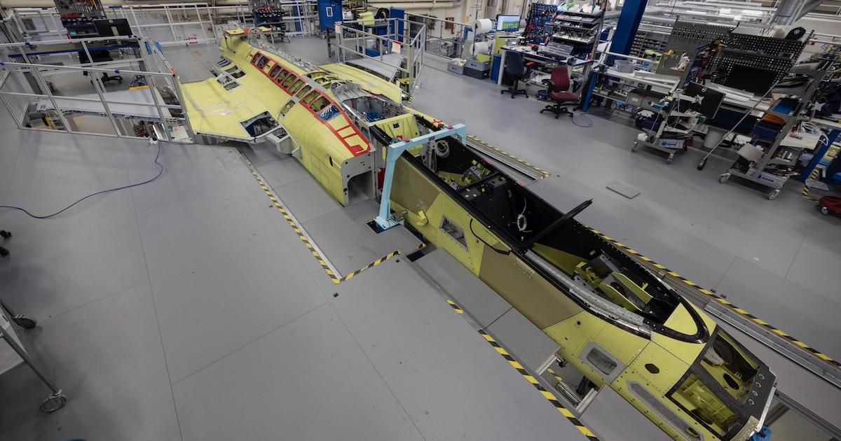 The first example of the Gripen F two-seater is in the final assembly hall at Gavião Peixoto. (Photo: Saab)